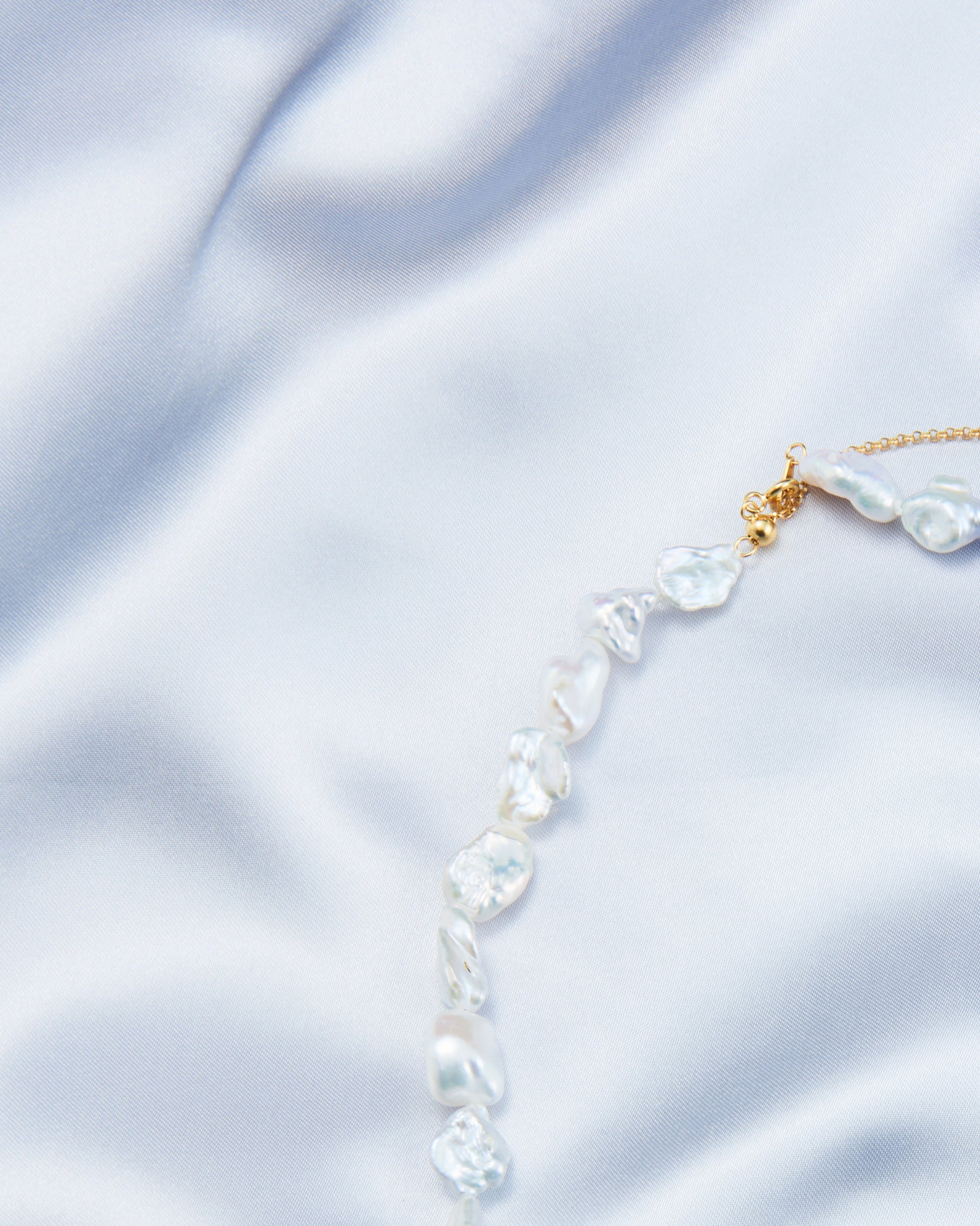 Artistically inspired baroque pearl necklace in gold-filled setting. Selected for inspiring organic forms perfect for creatives and artists.